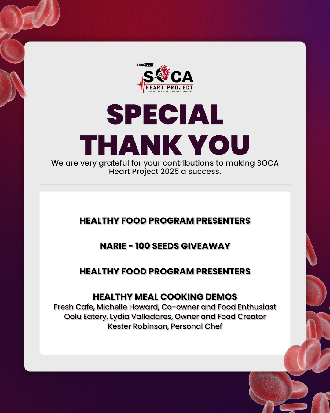 SOCA Heart Project was a 5K and 10K walk and run event held in September in recognition of Cardiovascular Awareness Month. The initiative aimed to promote heart health while bringing the community together through movement and shared purpose. I was responsible for leading the social media marketing and strengthening overall brand awareness for the event.